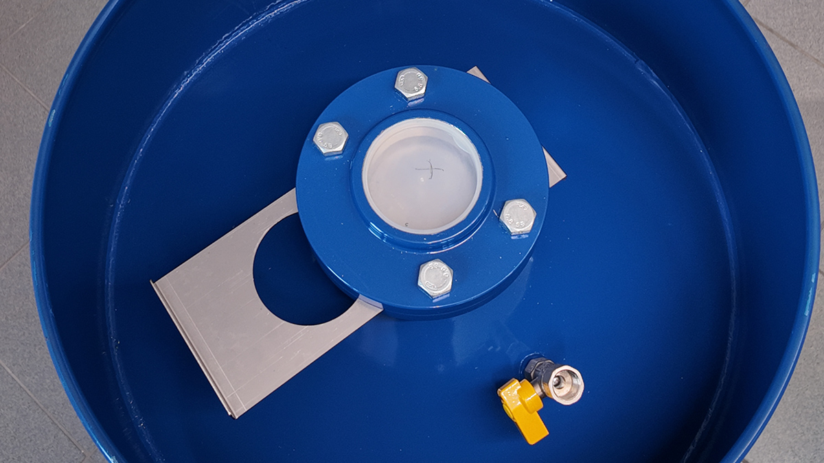Fusto metallico dotato di coperchio amovibile, con cono all’interno, completo di due aperture: